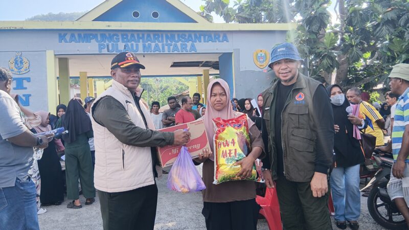 Bantuan berupa paket sembako disalurkan kepada 442 warga di empat desa yang berada di Pulau Maitara, Kecamatan Tidore Utara, Senin (27/4/2025).