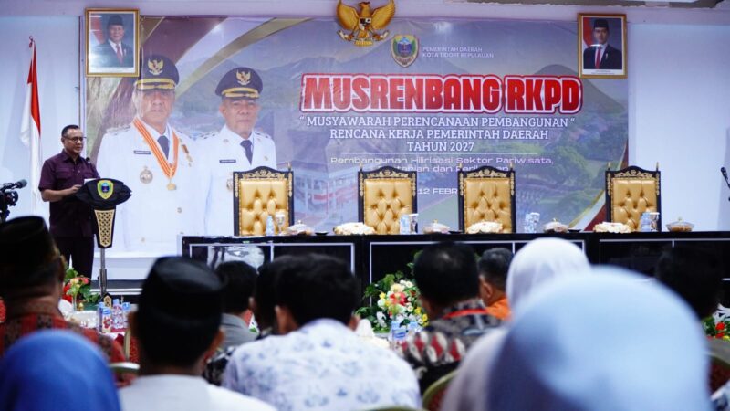 TIDORE, – Muhammad Sinen secara resmi membuka Musyawarah Perencanaan Pembangunan Daerah (Musrenbang) Kota Tidore Kepulauan Tahun 2027 yang berlangsung di Aula Sultan Nuku Kantor Wali Kota Tidore, Kamis (12/2/2026).